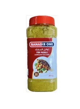Banadir One Fish Masala Powder 250 g — A vibrant, aromatic spice blend specially crafted to elevate fish dishes. With a perfect balance of heat, citrus, and savoury notes, this masala infuses your seafood with depth and richness. Ideal for grilling, baking, frying, or marinating — bring restaurant flavour to your kitchen effortlessly.