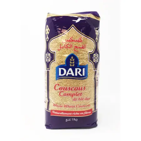 Dari Whole Wheat Couscous 1kg is made from natural whole wheat semolina rich in fiber, offering a healthy and delicious option for all couscous recipes. It features a light taste and high nutritional value