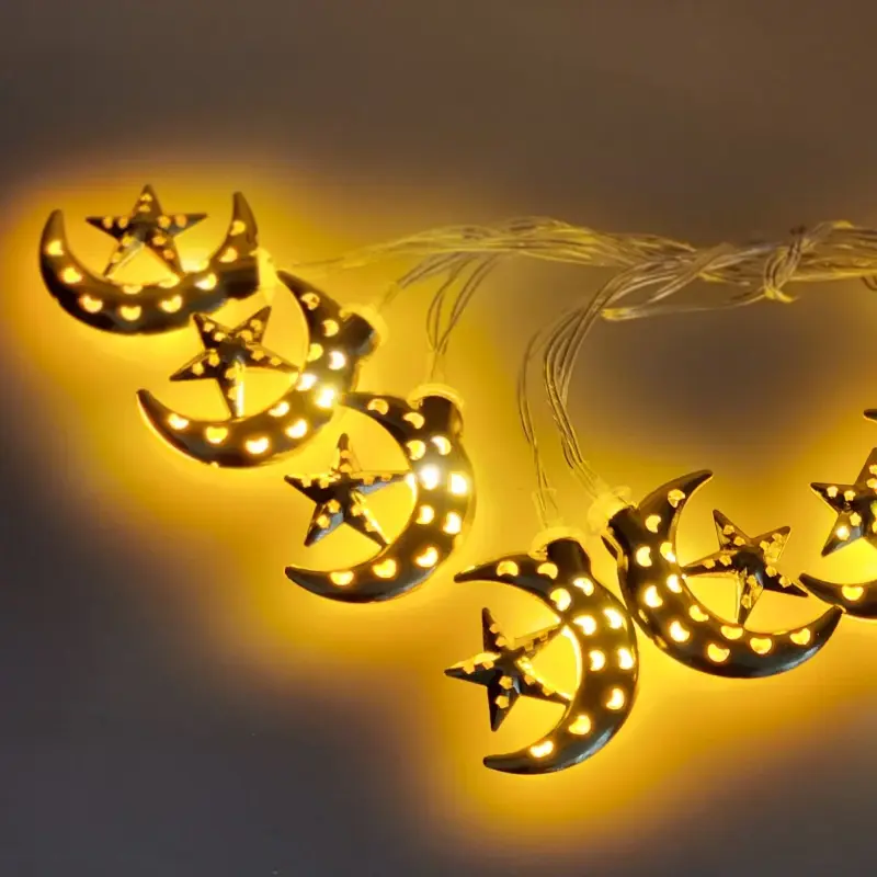 فرع نور زينة نحاس هلال ونجمة بإضاءة أصفر (ورم)