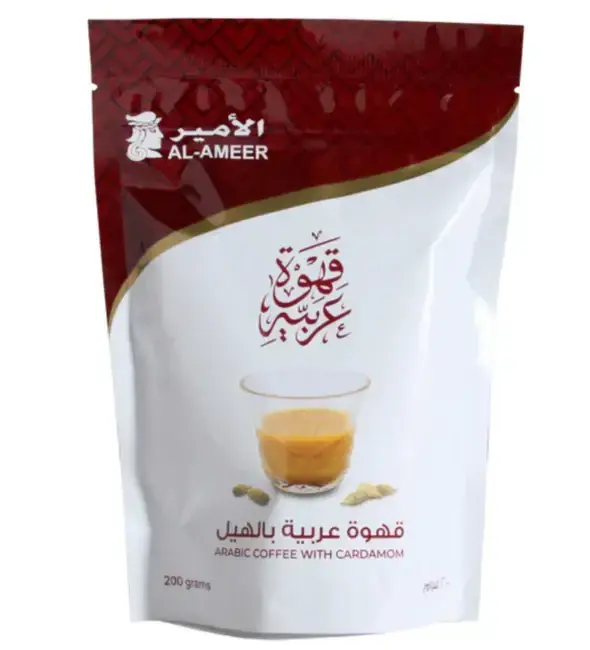 Al Ameer Arabic Coffee With Cardamom 200g delivers the authentic taste of traditional Middle Eastern coffee. Made from premium roasted coffee beans blended with aromatic cardamom.