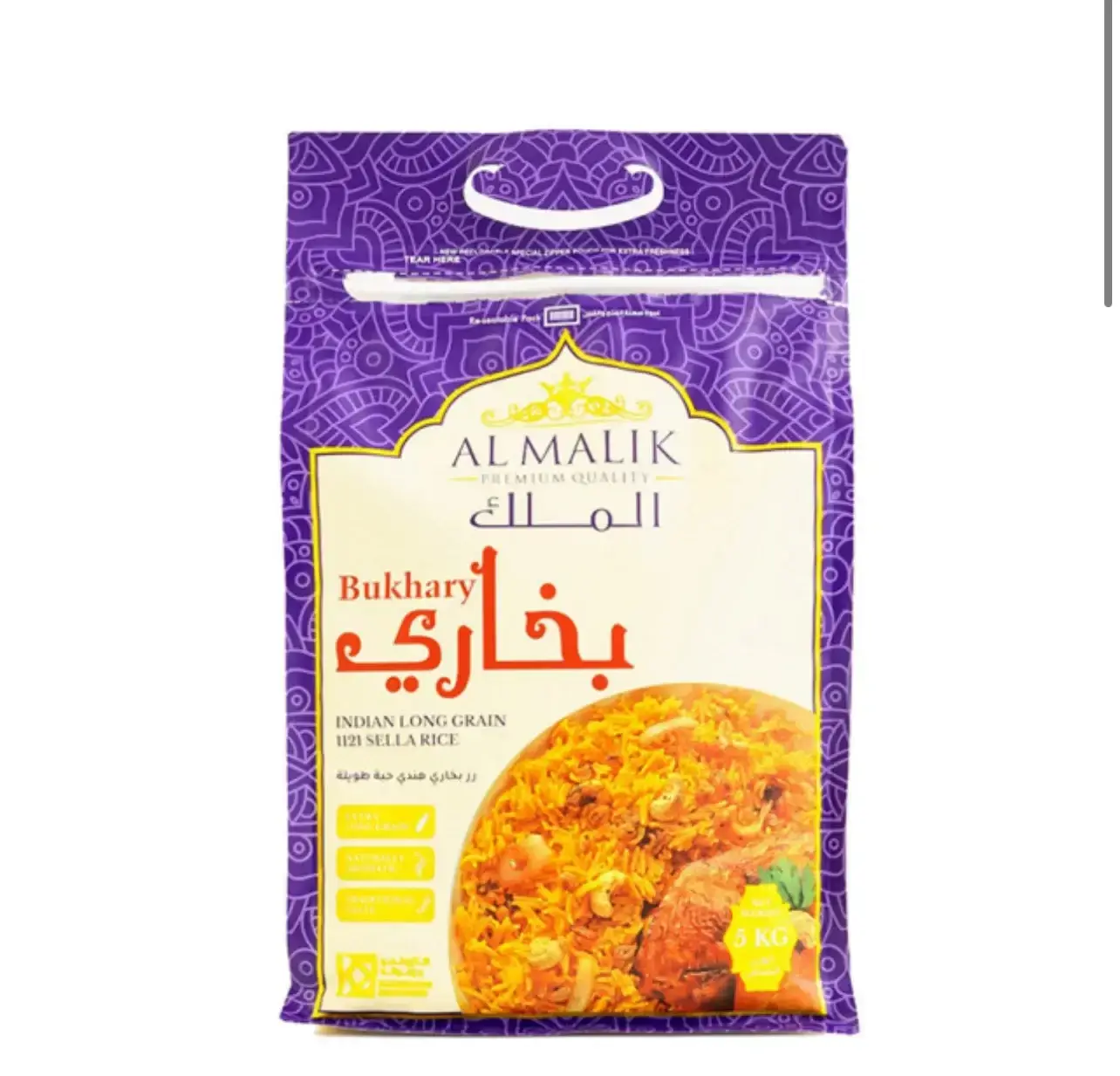 Al Malik Bukhari Rice is a premium-quality long grain rice, perfect for preparing traditional Bukhari dishes and other Middle Eastern rice recipes.