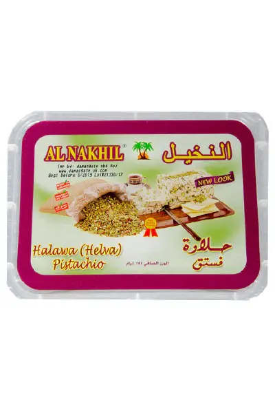 Alnakhil Halawa Pistachio 250g is a traditional sesame sweet blended with crunchy pistachios for a rich nutty flavor. A small yet delightful pack, perfect for enjoying with tea, coffee, or as a quick treat.