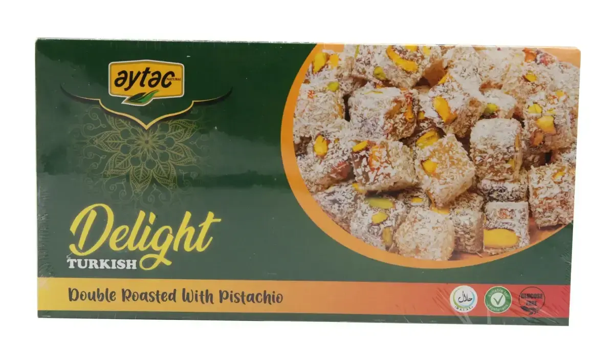 Aytac Turkish Delight Roasted Pistachio, Soft, chewy sweets generously coated and mixed with twice-roasted pistachios. A rich, nutty treat full of intense pistachio flavour, perfect for enjoying or gifting.