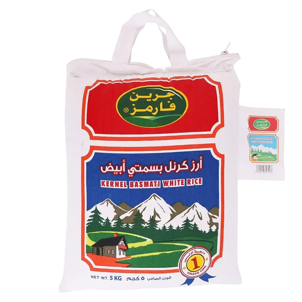 Green Farms Pakistani Kernel Basmati Rice 5kg is a premium-quality, long-grain basmati rice sourced from Pakistan, known for its rich aroma, delicate flavor, and fluffy, non-sticky texture. Perfectly aged to enhance its natural taste, this rice is a versatile choice for daily cooking and special occasions alike. The 5kg pack is convenient for families who want authentic basmati rice with consistent quality.
