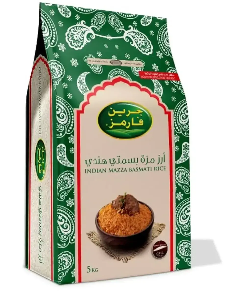 Green Farms Indian Mazza Basmati Rice 5kg is premium-quality basmati rice known for its extra-long grains, rich aroma, and fluffy texture. Perfectly aged to enhance flavor and cooking performance, this rice is an excellent choice for everyday meals and special dishes alike. It cooks beautifully, remaining non-sticky while adding authentic taste to your table.
