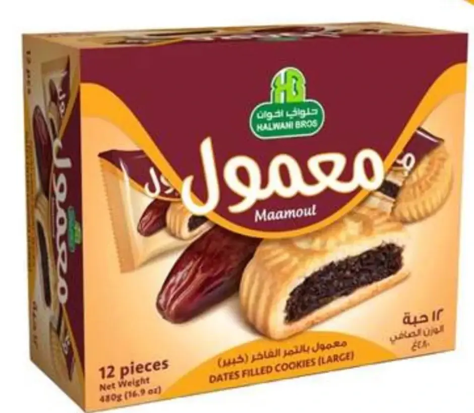 Enjoy the healthy bite of the Halwani Maamoul Dates Filled Cookies. It is filled with creamy and sweet date paste that melts down in your mouth and satiates your taste buds. You can serve this sweet delicacy to your guests on occasions like family reunions and get-togethers._x000D_\n- Delicious snacking option for you and your family_x000D_\n- Perfect for serving with a cup of tea or coffee_x000D_\n- Ideal snack to serve to your guests on occasions like get-togethers or reunions_x000D_\n- Suitable for small breaks or tea breaks