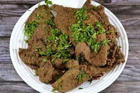 Slices of beef liver are seasoned, coated in wheat bran, and deep-fried until perfectly crisp. Kebda Rada (Fried Bran Liver) brings authentic Arabic flavor to your table.