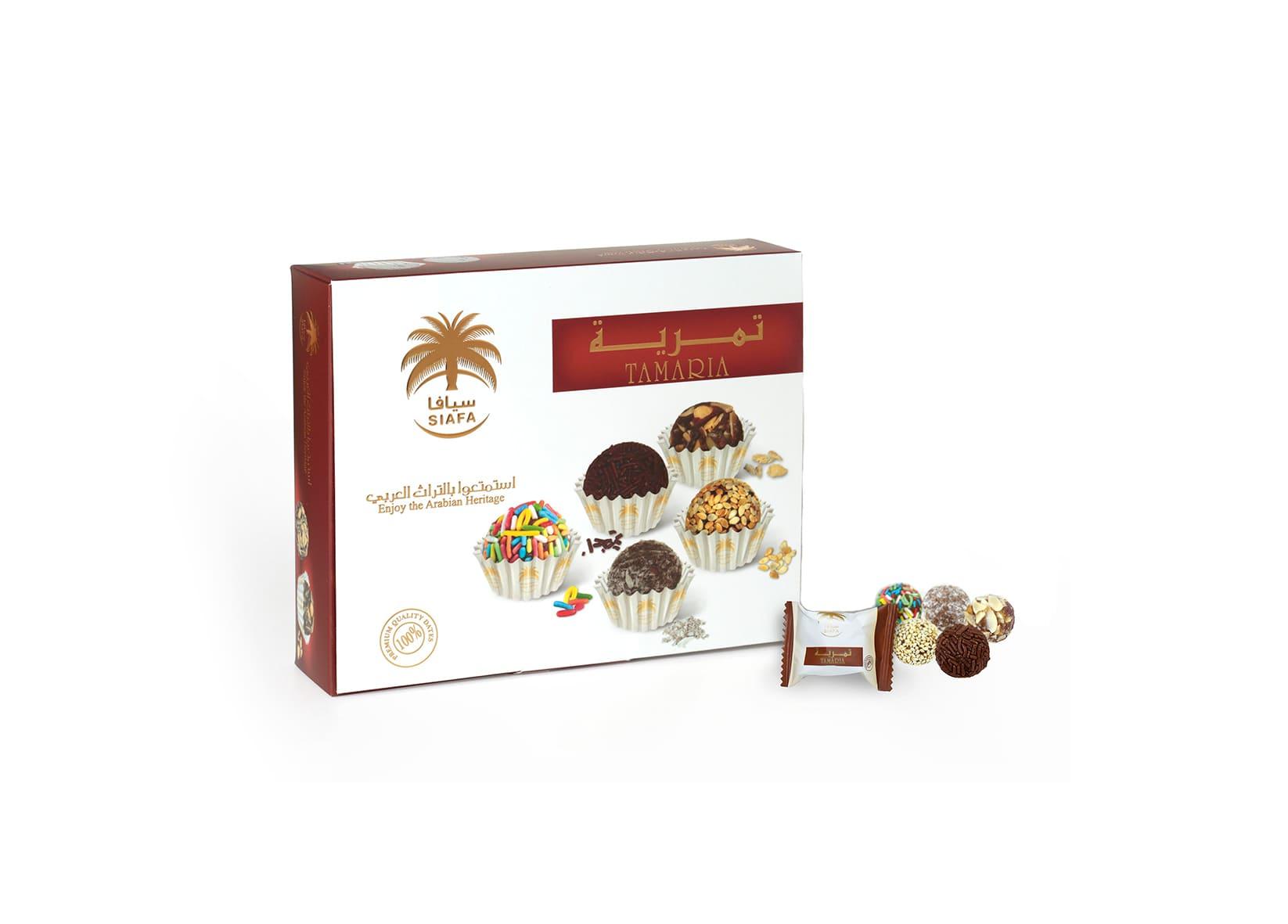 Indulge in the rich taste of Siafa Tamaria Assorted 300g, crafted from 100% premium dates and assorted fillings.